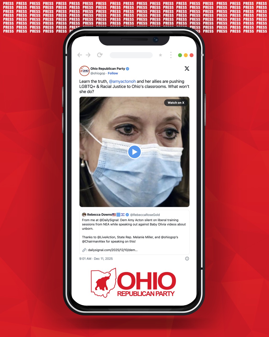 “Amy Acton loves to lecture others about political battles in schools, but her silence on the NEA’s political agenda is deafening,” said Chairman Alex Triantafilou. “If she truly opposes politics in the classroom, she should apply that standard consistently, not only when it suits her political beliefs. Ohioans deserve clear and honest answers.”