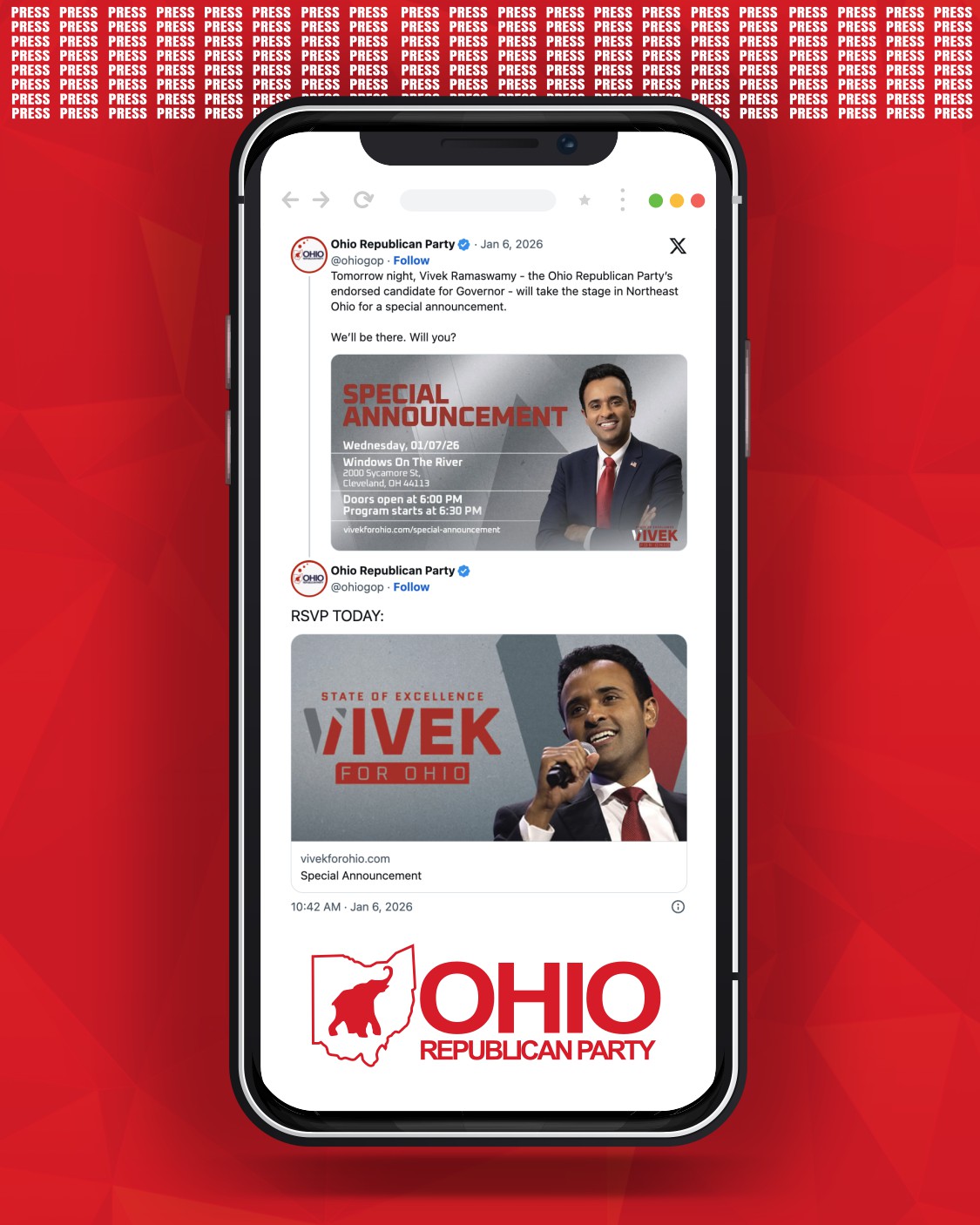 “Ohio Republicans are energized as we begin 2026, and this event marks an important moment for Vivek’s campaign,” said Ohio Republican Party Chairman Alex M. Triantafilou. “Ohioans from across the state are paying close attention to the direction of this race and the vision being laid out for our future.”